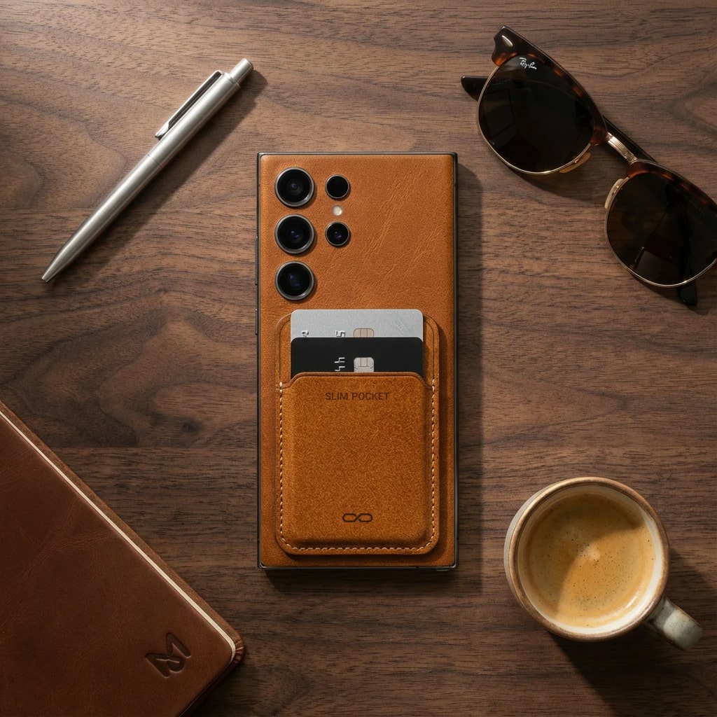 جاکارتی چرم طبیعی ماهوت با چسب سیلیکونی و نام اسلیم پاکت (SlimPocket) برای بیش از ۵۰۰ مدل گوشی هوشمند طراحی شده است. اندازه گیری الگوی دقیق هر مدل باعث میشود کیف کارت بدون مزاحمت برای دوربین یا سنسورها نصب شود. لیست بخشی از مدلهای پرطرفدار: