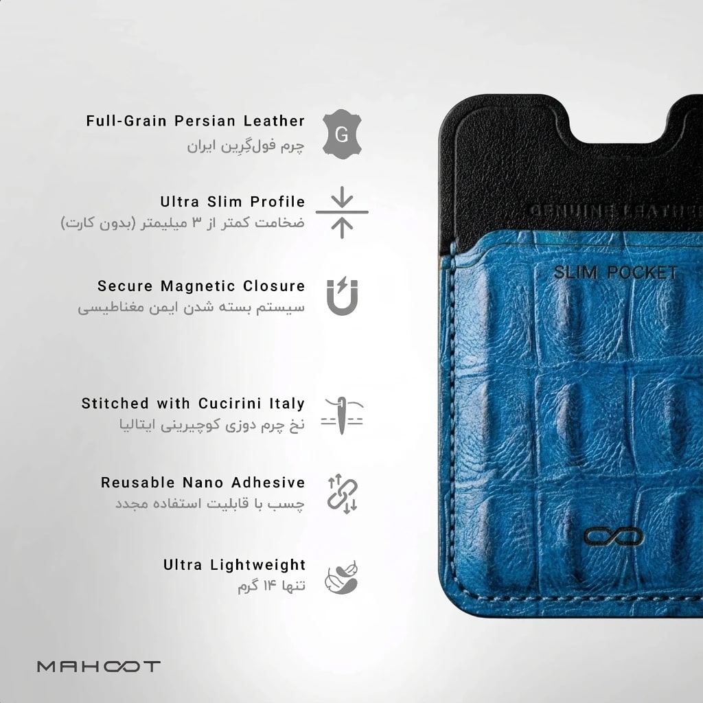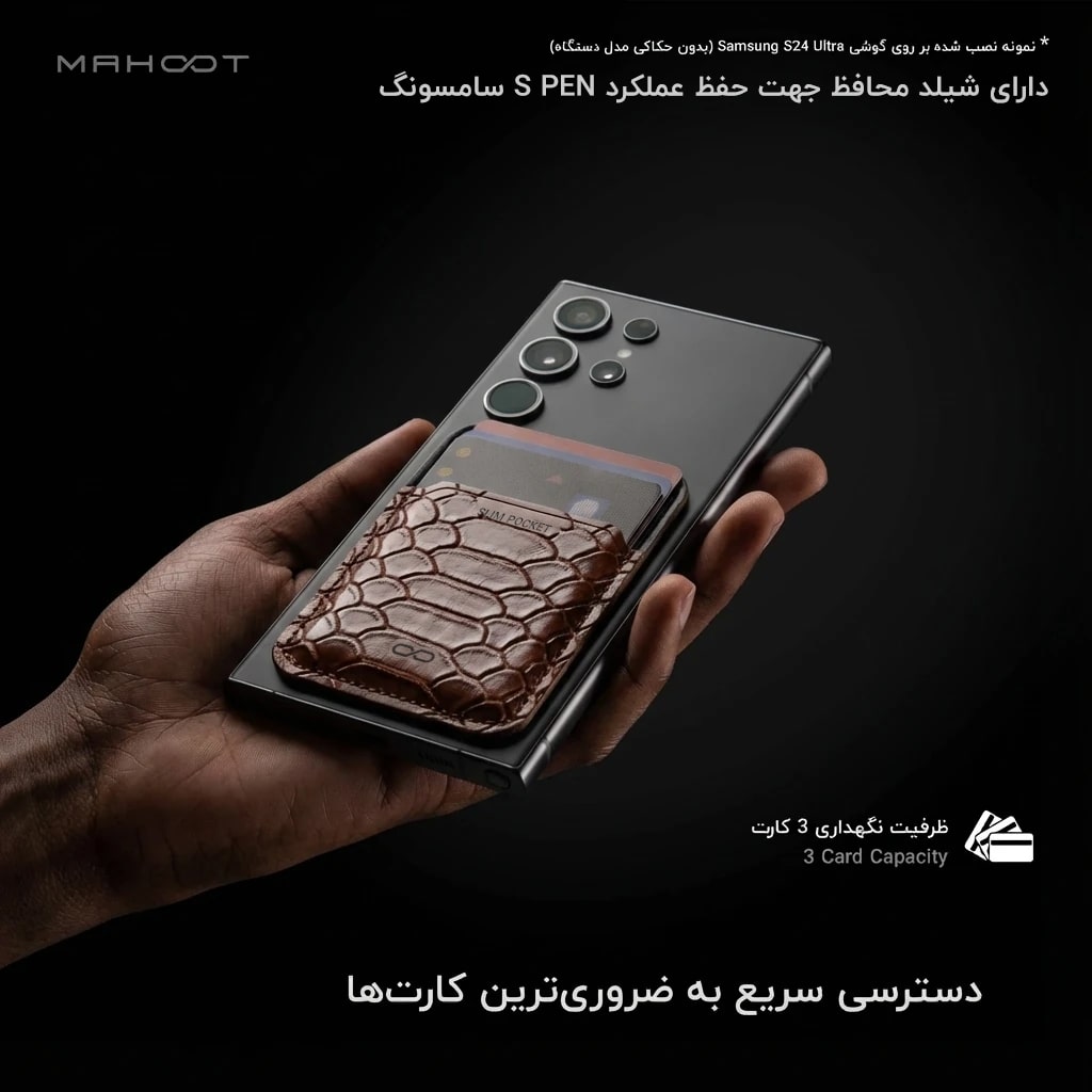 اسلیم پاکت ماهوت، تعریفی جدید از کارایی و ظرافت برای کسانی است که هوشمندانه انتخاب میکنند. این محصول که از چرم طبیعی فولگِرِین ایرانی (Full-Grain Leather) ساخته شده، با گذر زمان ظاهر کهنه و با قدمتی پیدا کرده و به بخشی از استایل شما تبدیل میشود. برای تضمین حداکثر دوام، از نخ معتبر کوچیرینی ایتالیا (Cucirini Italy) در دوخت آن استفاده کردهایم. طراحی مهندسیشده اسلیم پاکت، تجربهای بینظیر از سبکی را ارائه میدهد. با ضخامت کمتر از ۳ میلیمتر و وزن تنها ۱۴ گرم، حضور آن را به سختی حس خواهید کرد. این محصول با ظرفیت ۳ کارت (3 Card Capacity)، شما را از کیف پولهای حجیم بینیاز میکند. در روزهای اول، کارت ها با چرم طبیعی کمی اصطکاک دارند، اما به مرور زمان اسلیمپاکت فرم گرفته و تجربه استفاده از آن روانتر و لذتبخشتر میشود. امنیت کارتهای شما اولویت ماست. قفل مغناطیسی هوشمند (Secure Magnetic Closure) با بهرهگیری از آهنربای قدرتمند نئودیومی با شیلد نیکل، کارتها را با قدرت در جای خود نگه میدارد و از افتادن آنها حتی در حرکت جلوگیری میکند. این سیستم ضمن تضمین امنیت، هیچ تداخلی با کارتهای بانکی ایجاد نمیکند. ویژگی منحصربهفرد اسلیم پاکت، شخصیسازی با حکاکی مدل گوشی شما است که آن را به اکسسوری کاملاً انحصاری شما تبدیل میکند. چسب نانوی هوشمند نیز به شما اجازه میدهد تا محصول را چندین بار برای رسیدن به بهترین موقعیت روی قاب یا بدنه گوشی جابجا کنید، بدون اینکه هیچ اثری باقی بماند. (توجه: از نصب روی قابهای سیلیکونی، چرمی یا ناهموار خودداری کنید.) این محصول در یک بستهبندی کتابی فاخر ارائه میشود که آن را به گزینهای ایدهآل برای یک هدیه هوشمندانه و ماندگار تبدیل مینماید. ماهوت؛ جزئیاتی که تفاوت را میسازند.